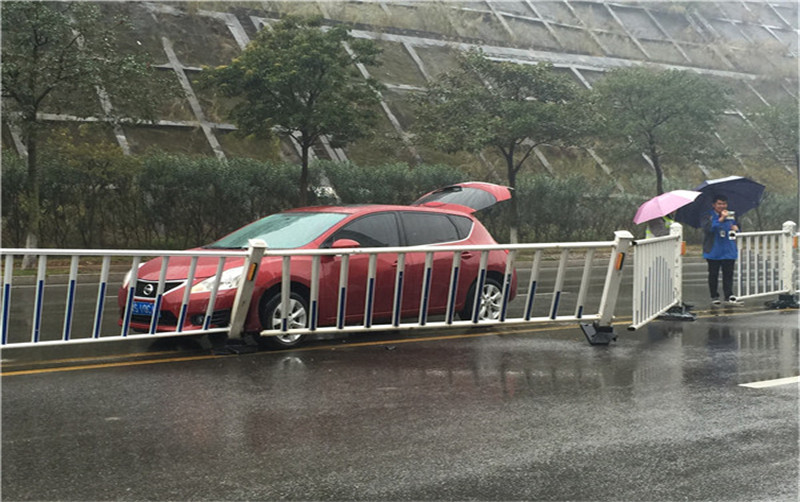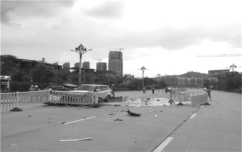 然而,一些護欄卻被車輛撞毀,弄得滿地藉。