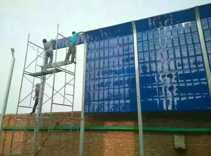 金屬聲屏障面板采用鍍鋅鋼板,穿孔率以上。聲屏障的背板和龍骨也采用鍍鋅鋼板,外表PE噴涂腐處理。選擇以上金屬聲屏障材料,主要考慮到小區(qū)聲屏障的整體度、使用壽命、吸聲性能的穩(wěn)定性,以及美觀等因素。